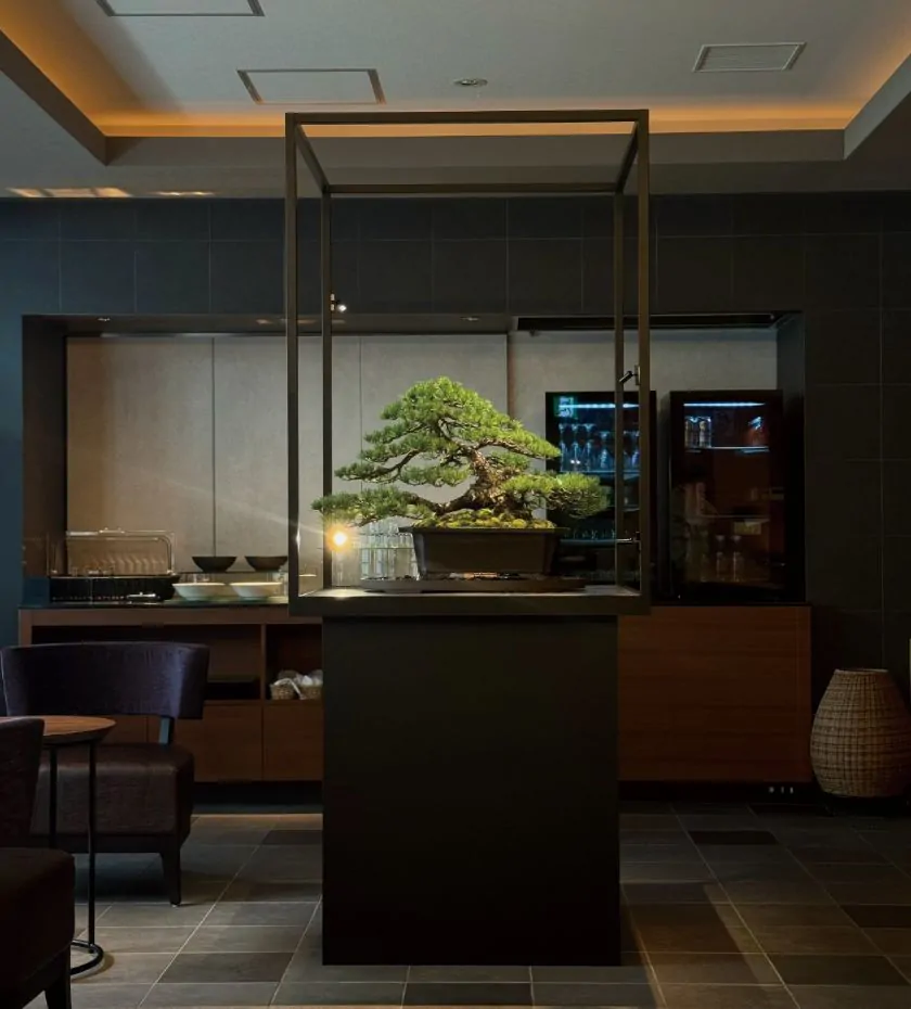 盆栽の展示場所を1からデザイン・設計を行い、様々な職人とのコラボレーションで空間演出をする事が可能です。